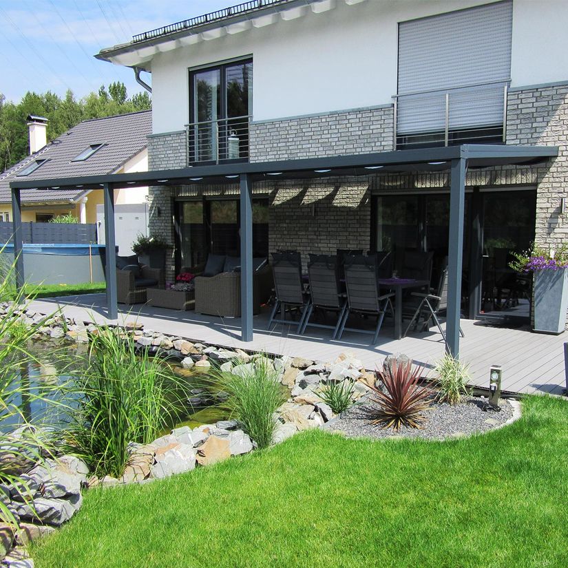 Zuverlässigkeit und Sicherheit: Unsere Terrassenüberdachungen zeichnen sich durch eine hohe Tragfähigkeit und geprüfte Qualität aus. Die Konstruktionen sind auf Langlebigkeit und Sicherheit ausgelegt und bieten zuverlässigen Schutz bei jedem Wetter.